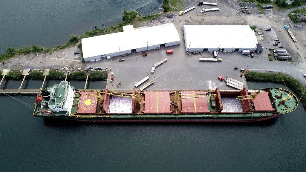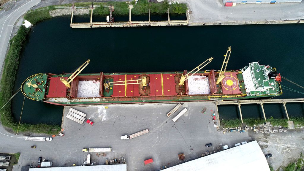 Une journée bien remplie dans le port de Valleyfield avec tout le monde sur le pont pour décharger 20 000 MT de cargaison en sac du Jessica B en provenance de Derince Turquie ainsi que le chargement de l’Andesborg avec une cargaison spécialisée allant des structures en acier aux semi-remorques destinées à un important projet d’extraction d’or .